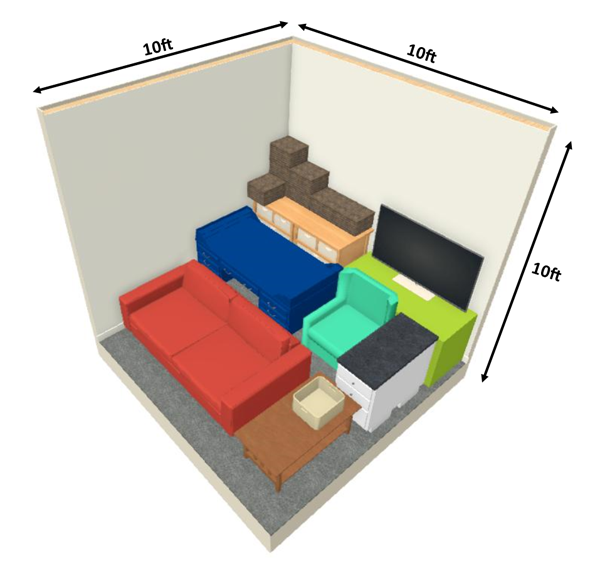Size of a medium bedroom. Can hold contents of a 2-3 bedroom apartment, furniture, appliances, or a small boat / vehicle. |